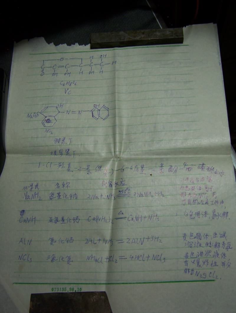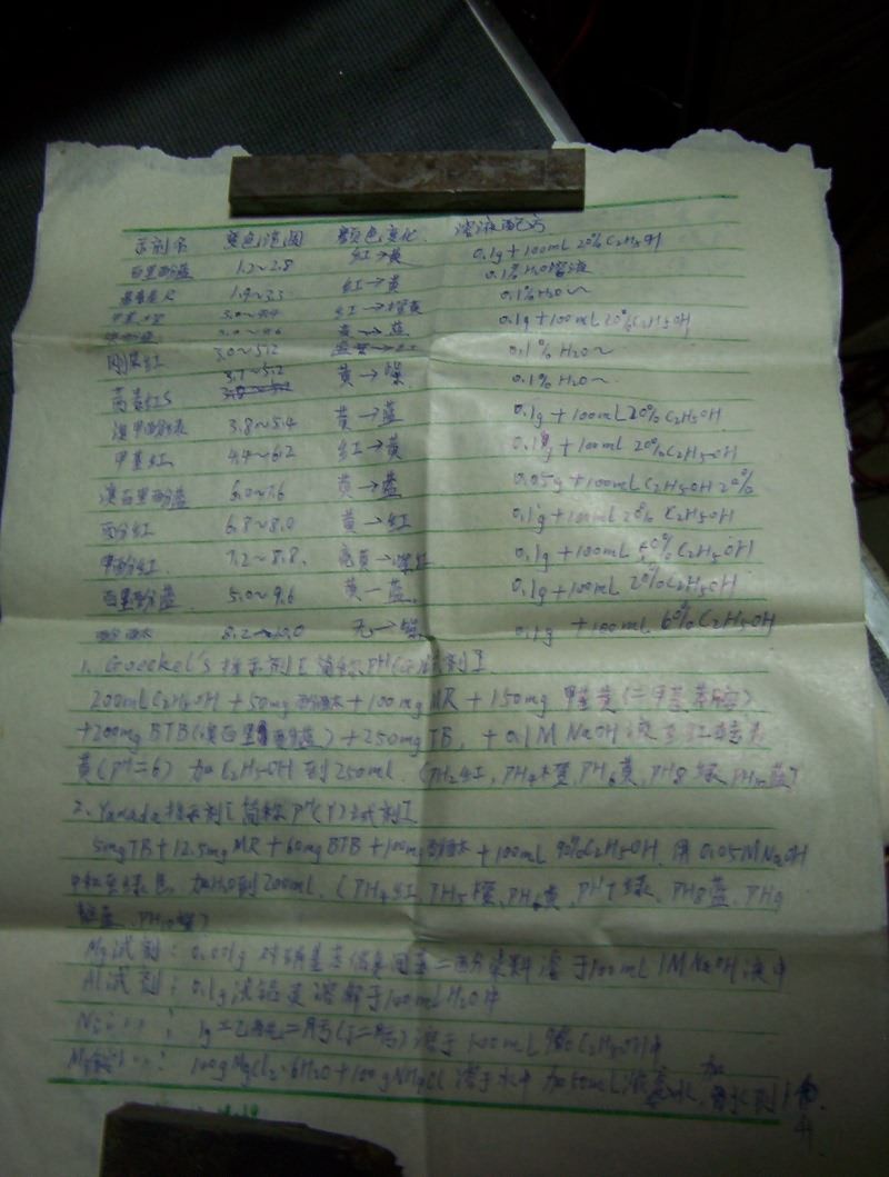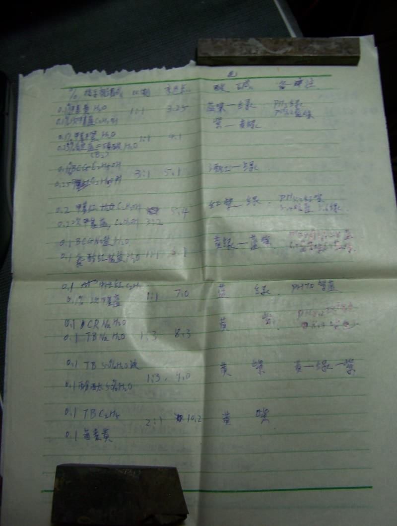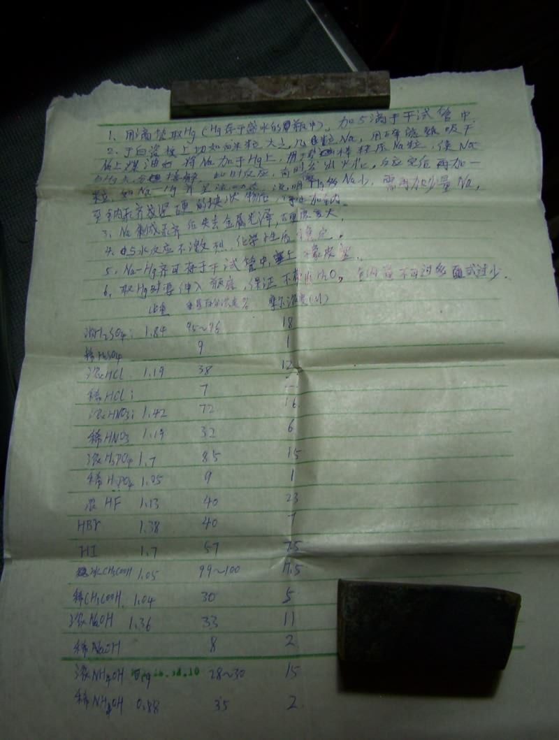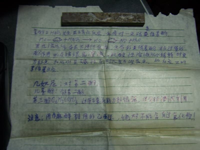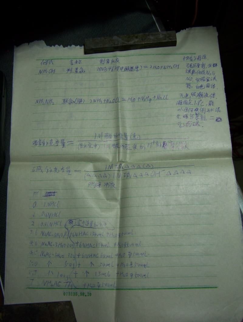 很遥远的事情了,今天看Baidu的化学吧,勾起了遥远的回忆,本着抢救“文化遗产”的精神,把以前辛苦写的这些试验,以及抄的这些资料都拍了个照放到网络上来,十年前的纸了,已经发黄变脆,笔迹么...我甚至可以说比现在写的还好看(汗)因为接触计算机后很少写字了——当年老师形容我写字象蚯蚓爬——而现在....变鬼画符了.....@_@