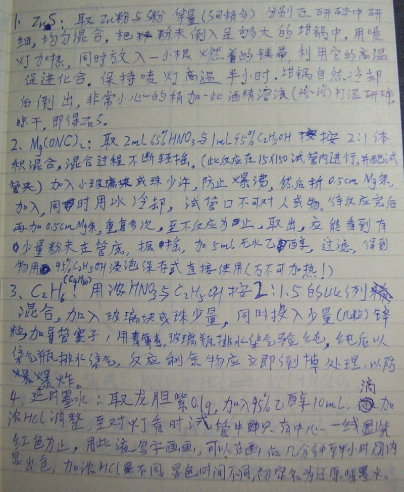 限于当时的年龄和水平,有些自己写的东西是有错误的,反应式有错或者生成物名称有错,但是反应过程都是反复试验过多次确定可以重现的,没有任何虚假。