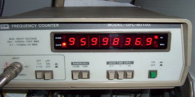 信号源显示9.599MHz,本来仪器肚子下面有个10MHz ADJ的电阻可调整,我也暂时没调整,因为到底是谁不准还说不清....