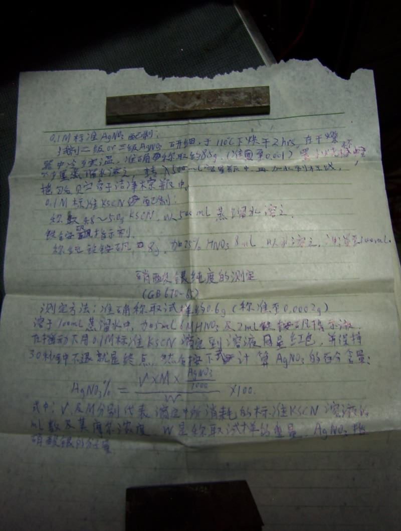 很遥远的事情了,今天看Baidu的化学吧,勾起了遥远的回忆,本着抢救“文化遗产”的精神,把以前辛苦写的这些试验,以及抄的这些资料都拍了个照放到网络上来,十年前的纸了,已经发黄变脆,笔迹么...我甚至可以说比现在写的还好看(汗)因为接触计算机后很少写字了——当年老师形容我写字象蚯蚓爬——而现在....变鬼画符了.....@_@