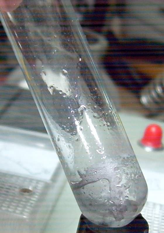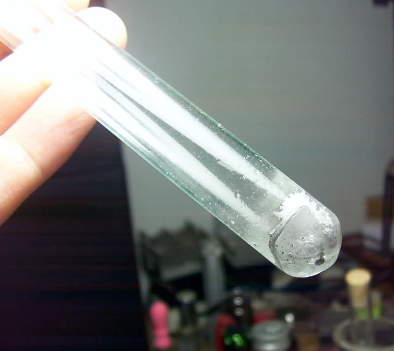 网络上很少提到钠汞齐合成过程“由于反应放出大量的热,可能有闪光发生,同时发出响声(注意安全!)”....早查到这个资料我就不会吓成这样儿了....不过话说回来量大点玻璃试管估计崩掉还是一定的....