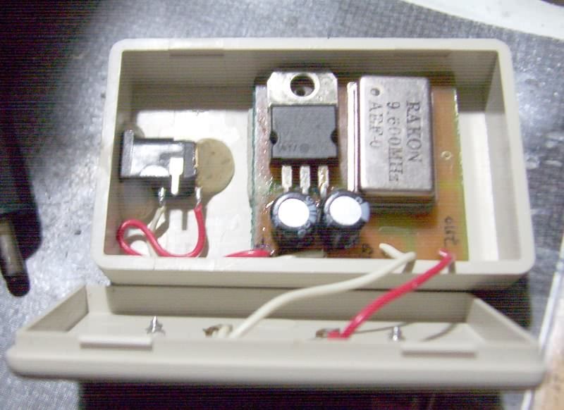 顺带说,用了7805稳压,由于这个有源晶振的工作电压是3.3V或5V,所以输入电压4.5V以上的时候就能正常工作,然后电压的变化(7805无法稳压的时候),最多影响到末尾2位的值。